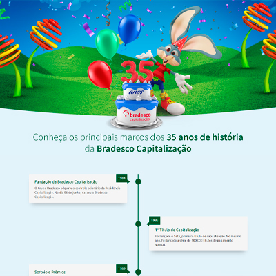 BRADESCO SEGUROS – CAP 35 ANOS Landing Page em comemoração aos 35 anos de Capitalização da Bradesco Seguros. HTML / JAVA SCRIPT ACESSE O SITE AQUI