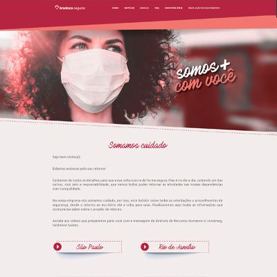 BRADESCO SEGUROS – SOMAMOS CUIDADO Site (cartilha digital) desenvolvido para a Bradesco Seguros para que os funcionários seguissem as recomendações da OMS na época da Pandemia de COVID-19. WORDPRESS / TEMA CRIADO ACESSE O SITE AQUI